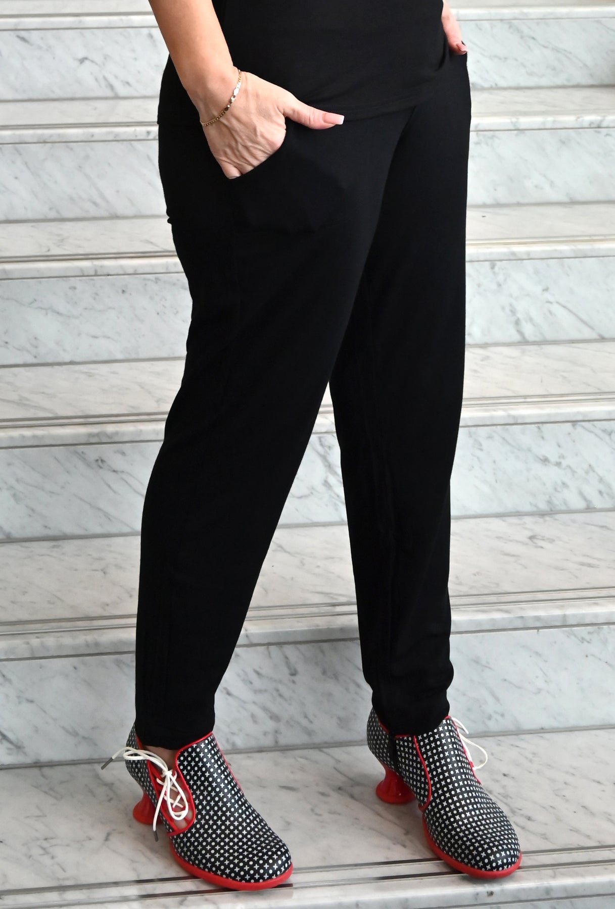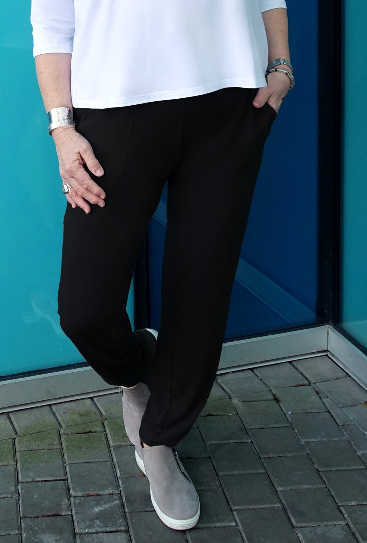 The contoured, "no-roll" waistband sits at your natural waist with a smooth specialized elastic that holds its shape without bunching so it lays flat and stretches seamlessly. Made with two side pockets and our signature buttery-soft, four way stretch bamboo, they're as practical as they are polished. You'll love wearing these pants all year, as they work well tucked into boots too.