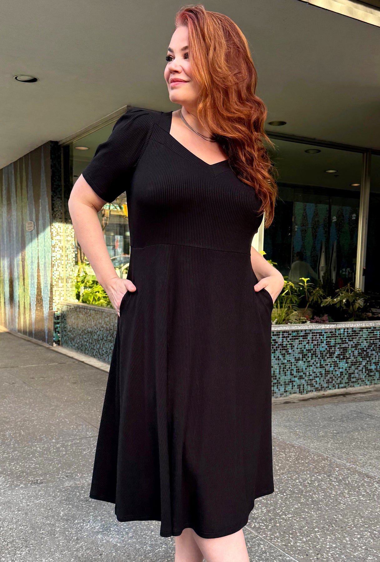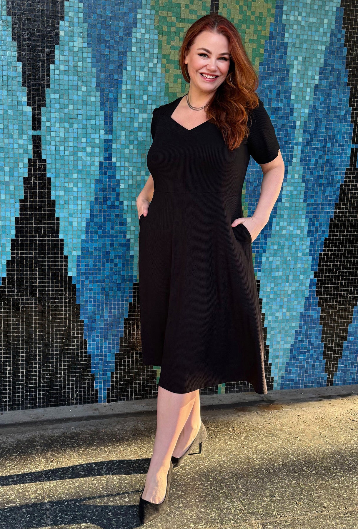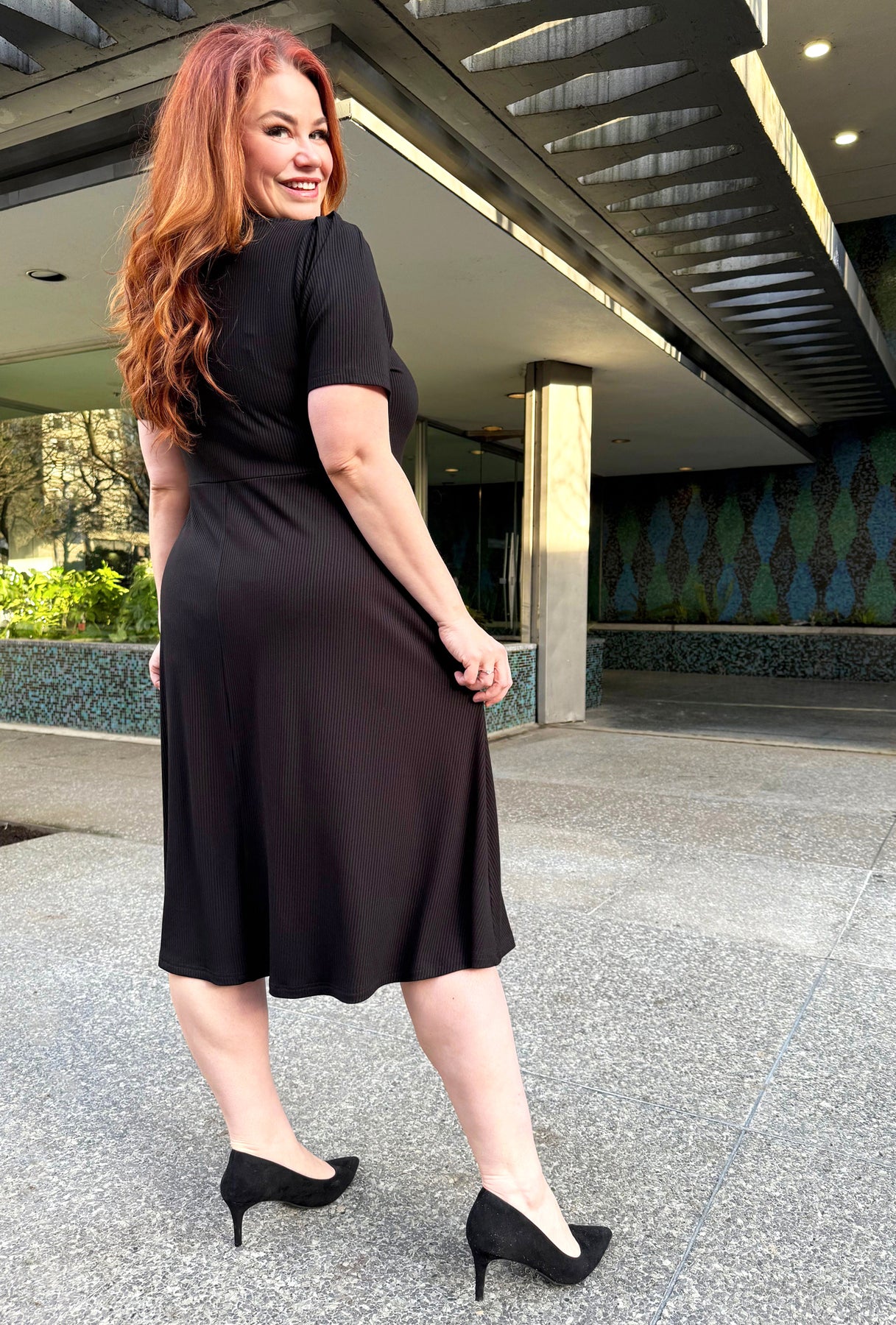 Thistle Midi Dress - Black Rib Knit Bamboo