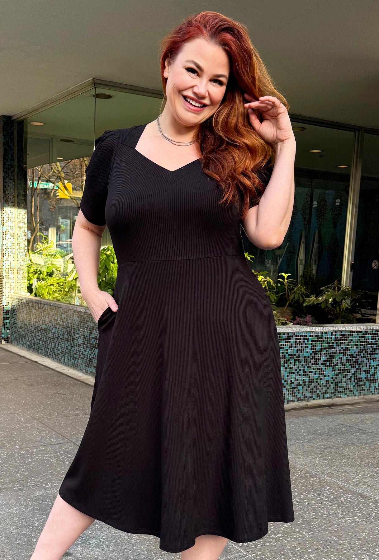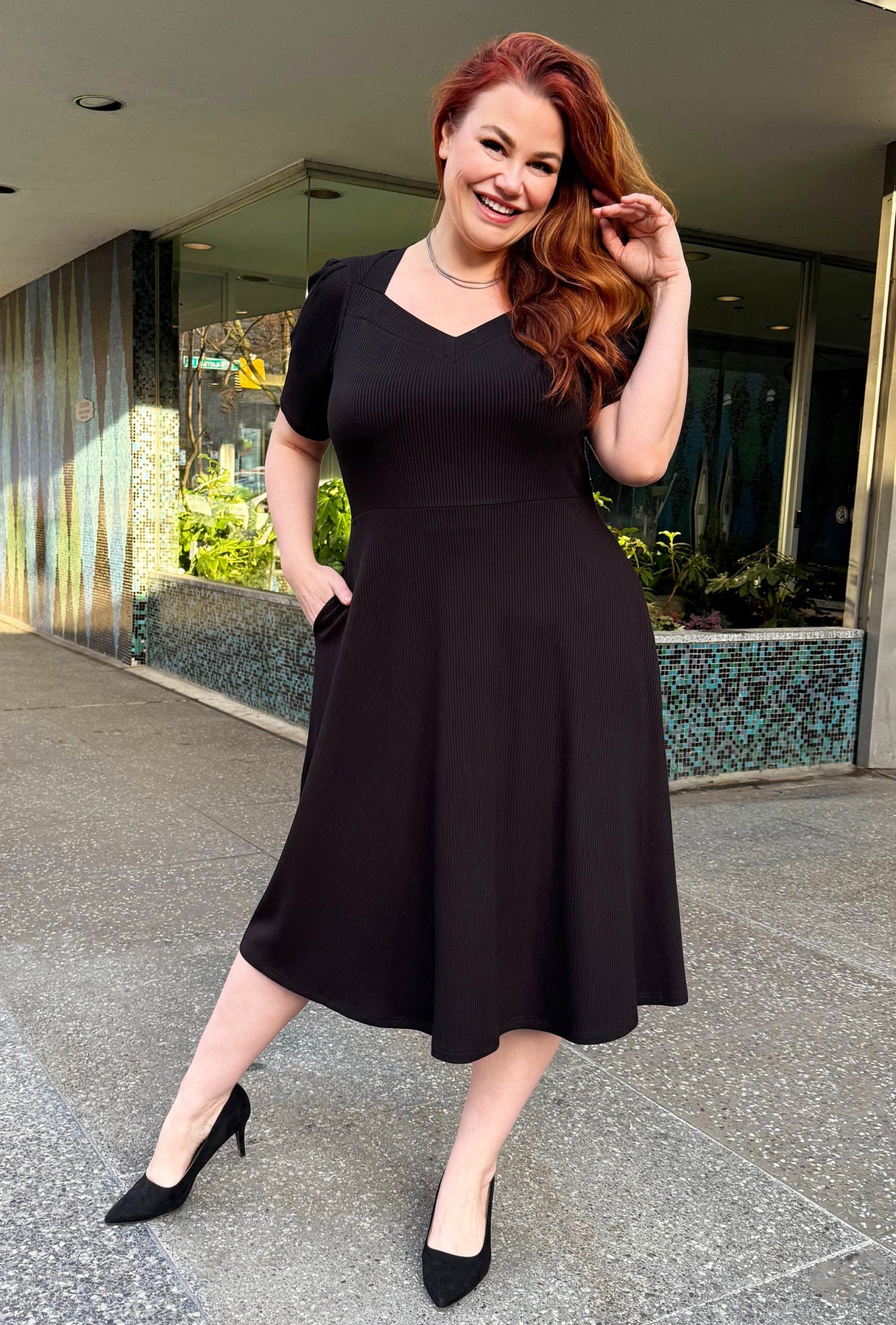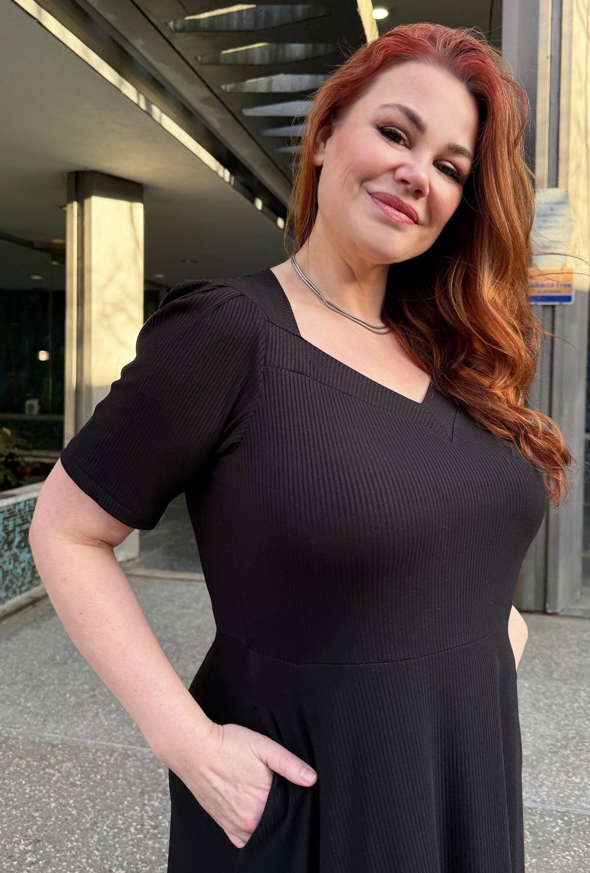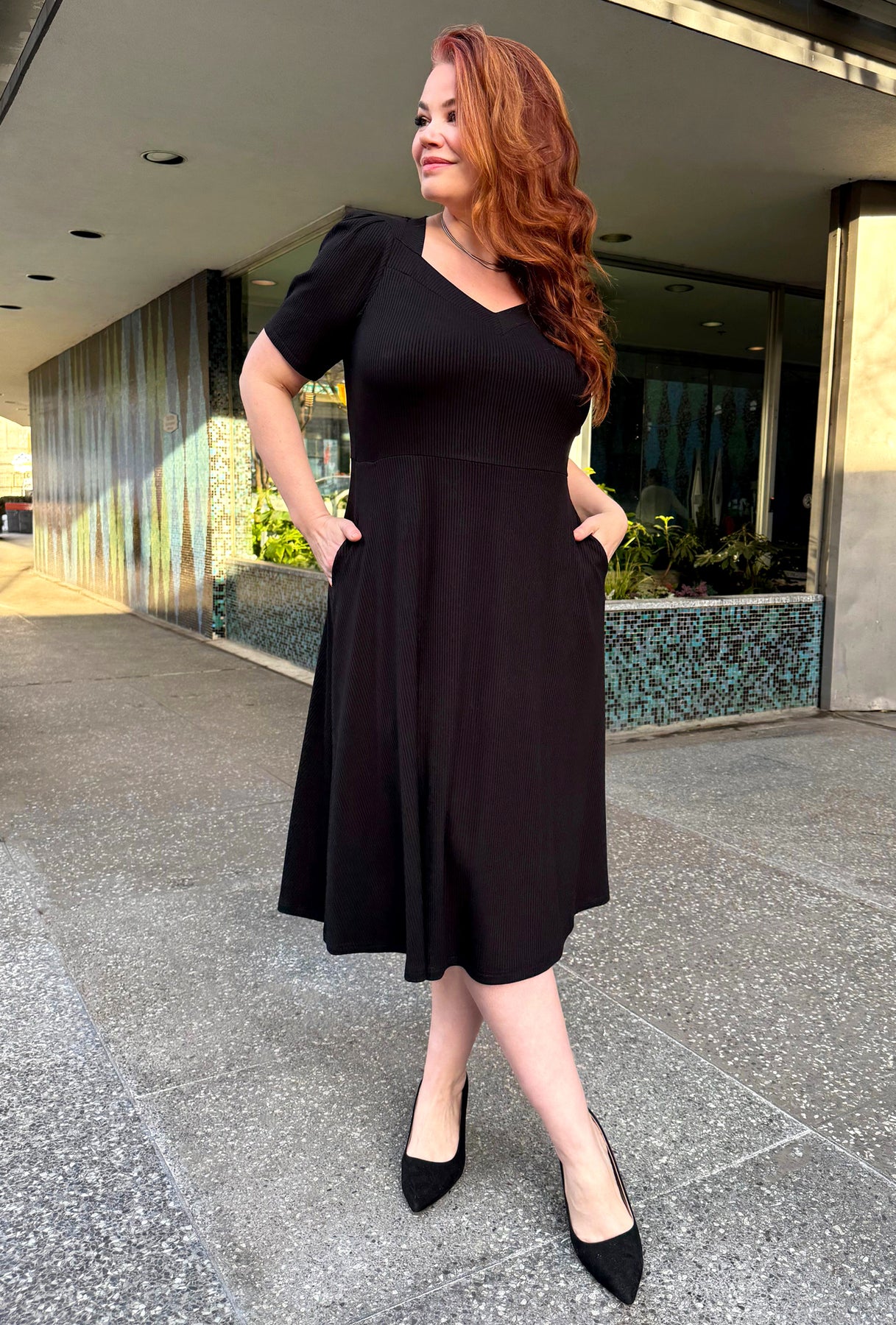 Thistle Midi Dress - Black Rib Knit Bamboo
