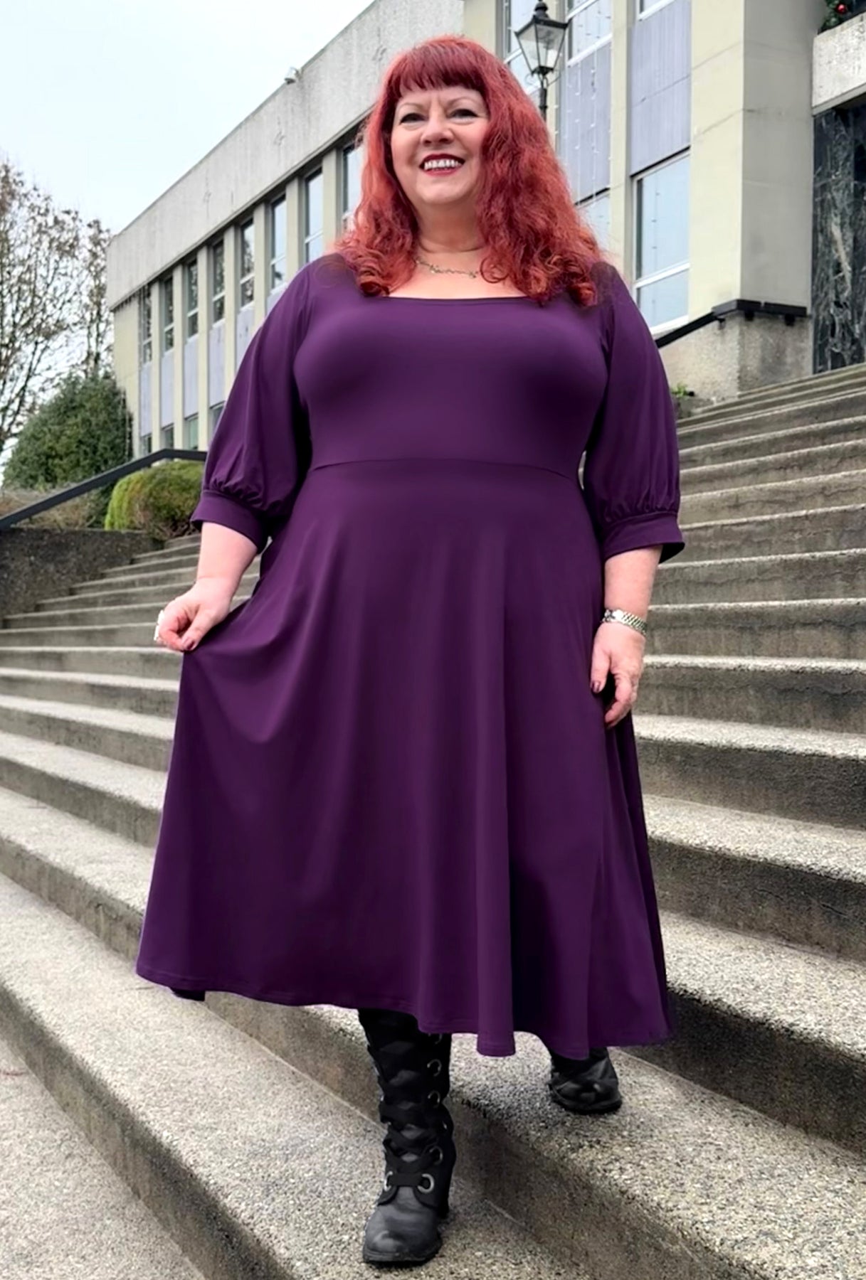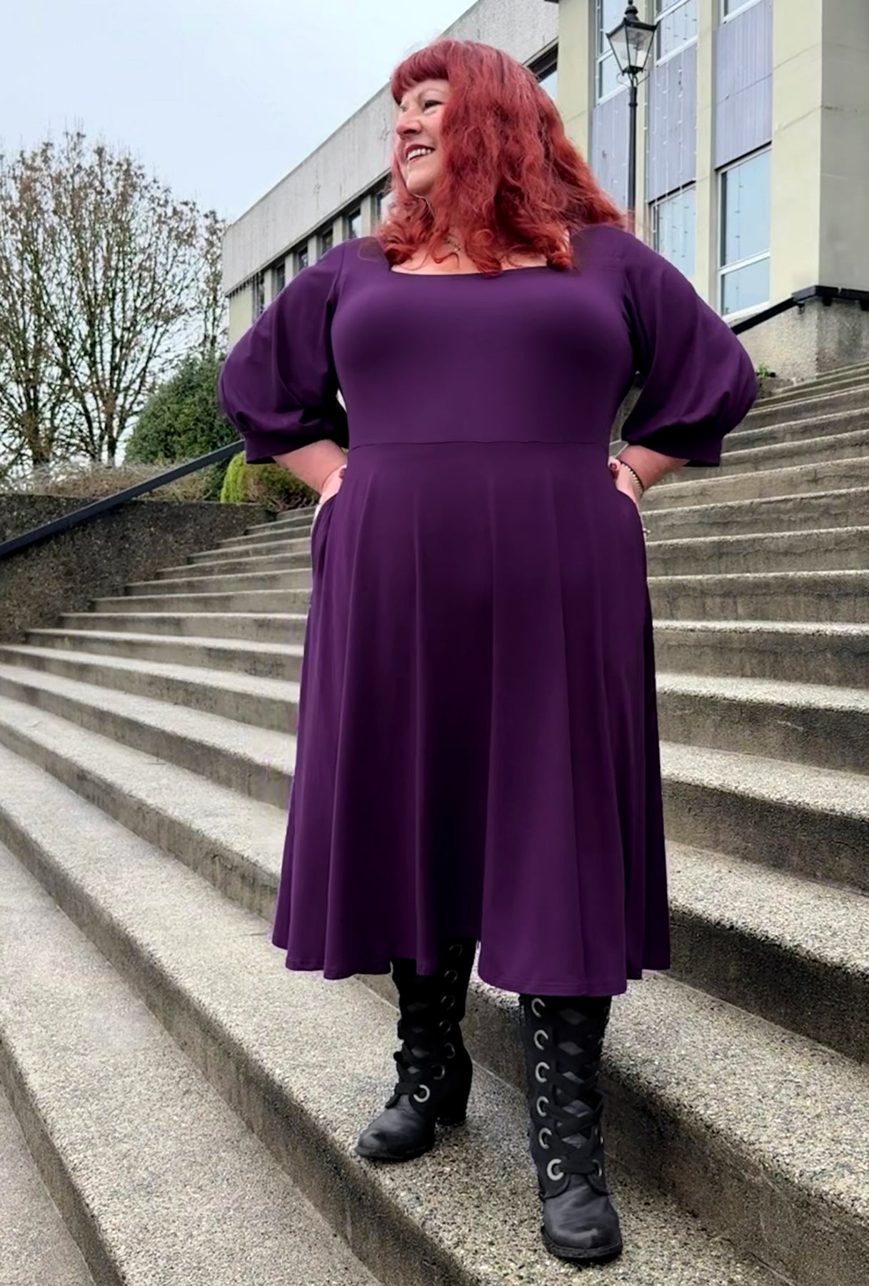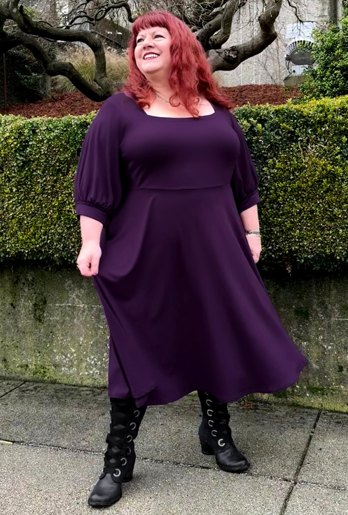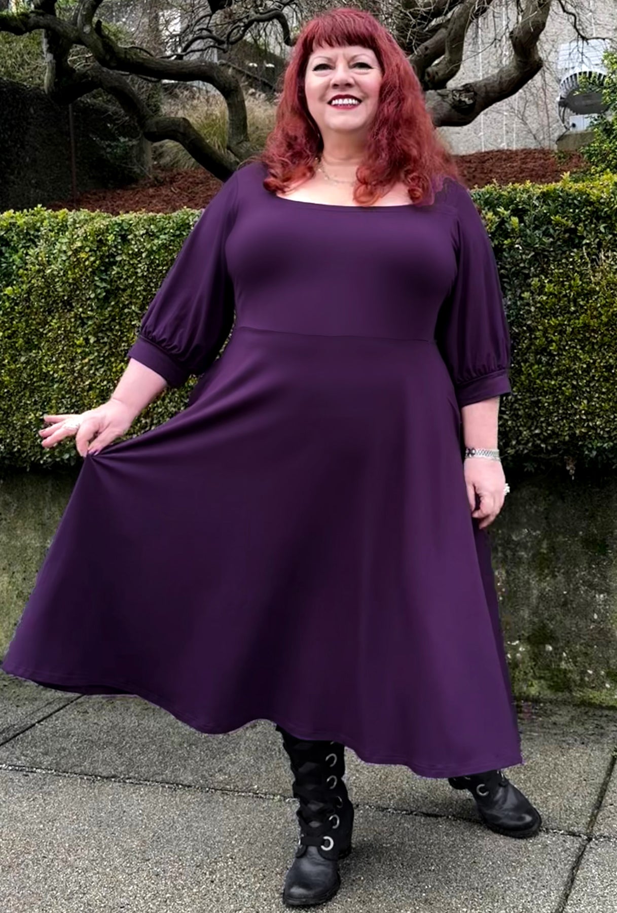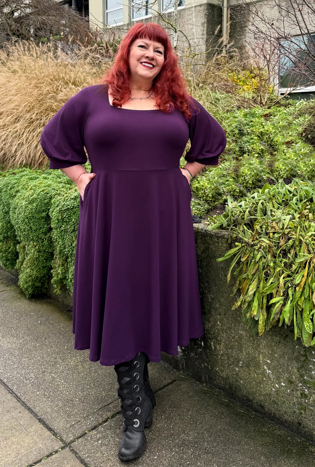 Step into your story with the Willow dress, an effortlessly versatile midi style made for every chapter of your day. This beauty boasts a flattering square neckline, full three-quarter sleeves gathered into cuffs, and a swingy full skirted silhouette with hidden pockets.  Made from luxuriously soft, sustainably-sourced bamboo knit, it feels incredible against your skin while supporting the planet. From your workdays to romantic evenings under the stars, the Willow transitions effortlessly through every moment of your life. It's the dress that adapts to you—playful, practical, and absolutely enchanting.