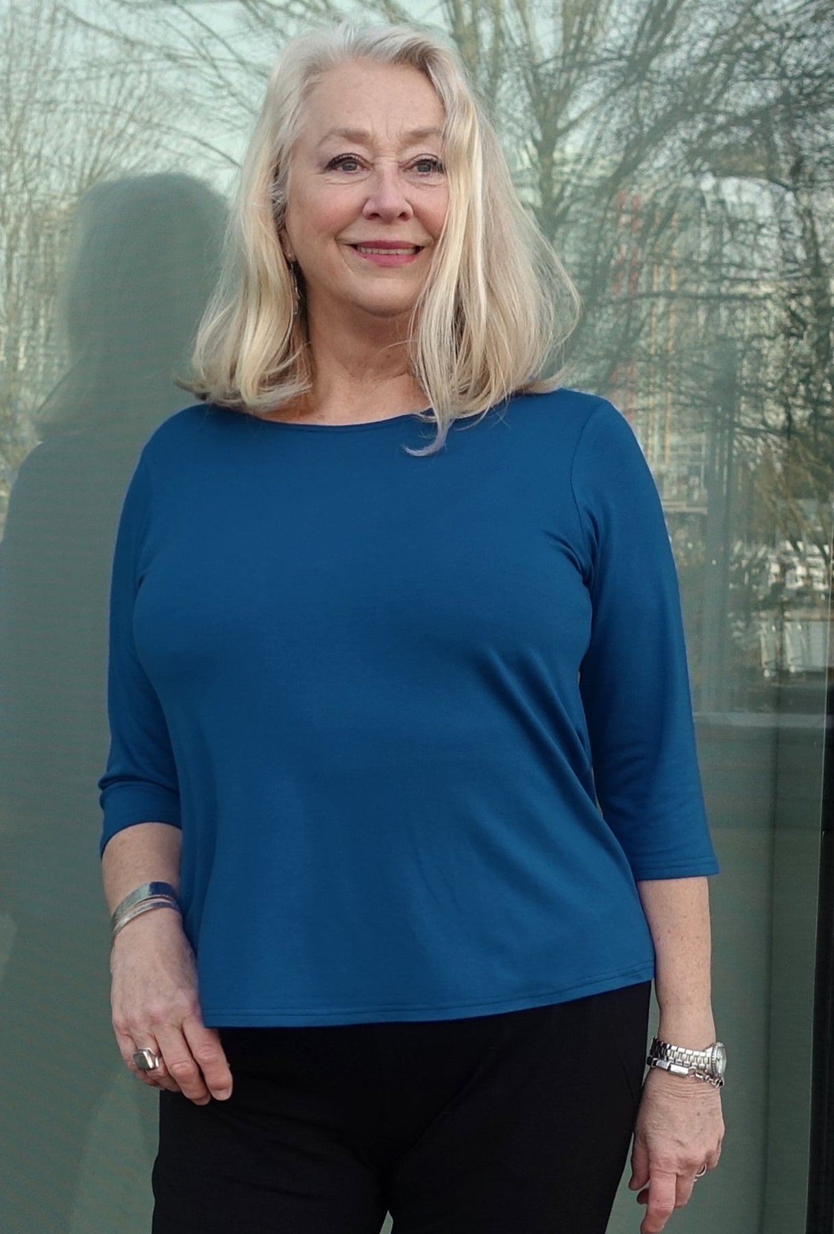 One of our most essential items has to be the Perfect Tee.  A timeless classic with a gentle scoop neck, 3/4 length sleeves, and a hem that hits in just the right spot, the Perfect Tee is just what you need under everything. Of course, it looks great on its' own too.